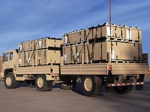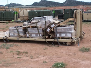 Each MulePAC is self-contained and designed to maximize capacity of all military vehicles, allowing for fewer trips and minimizing the loss of life with less exposure to the enemy. Superior structural integrity means ratchet straps can be used to secure the load without collapsing or damaging the contents, and an interlocking feature allows different sized MulePACs to be efficiently stacked together. MulePACs can be offloaded from all vehicles via forklift, or integrated 6,000 pound corner straps facilitate sling offloading. During extreme conditions, MulePAC can be combat offloaded with little to no damage to contents or container.
