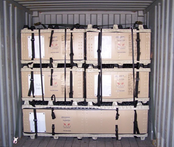 MulePACs can be stacked, and fit perfectly into MILVANs, filling them to capacity. This prevents supplies from shifting during transportation, and can save money on ruined or broken supplies and equipment. They also load much quicker.